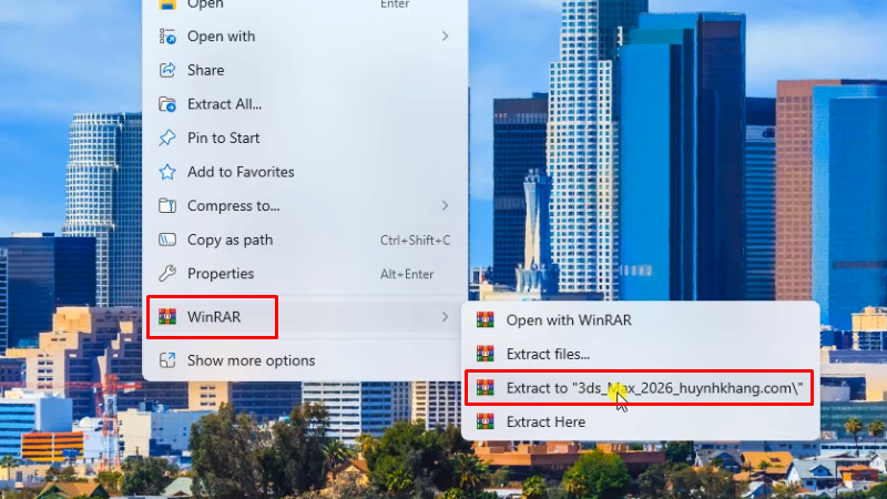 - Sử dụng WinRAR để giải nén file vừa tải bằng cách nhấp chuột phải và chọn “Extract Here”.