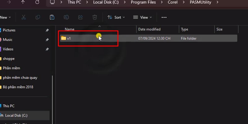 Vào thư mục PASMUTILITYBước 20: Vào thư mực V1