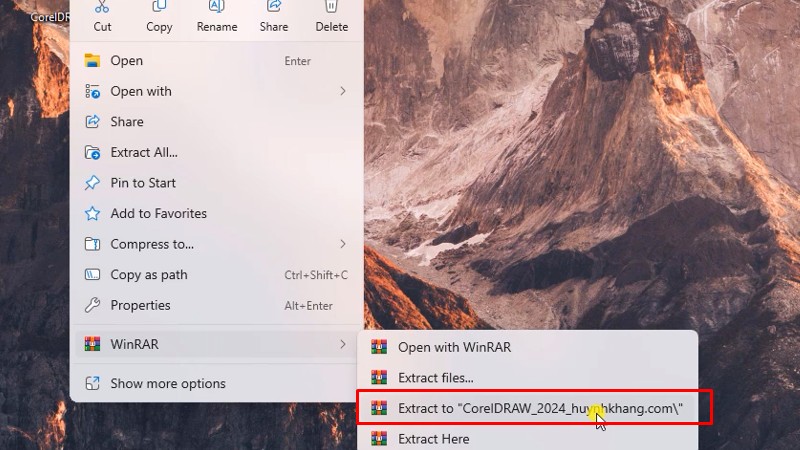 - Sử dụng WinRAR để giải nén file vừa tải bằng cách nhấp chuột phải và chọn “Extract Here”.