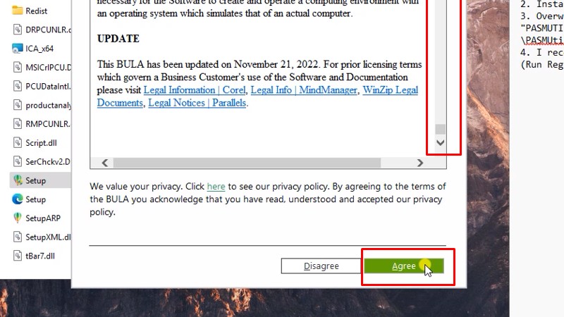 Kéo thanh xuống cuối và bấm AgreeBước 22: Copy Serial number
