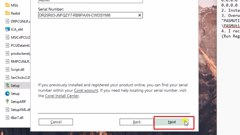 Dán vào ô Serial Number như hìnhBước 24: Bấm next