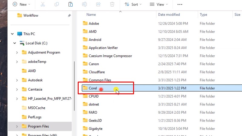 Bấm vào program FilesBước 35: Vào Corel