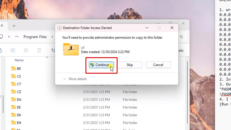 Bấm vào Replace the file in the destinationBước 40: Bấm vào Continue