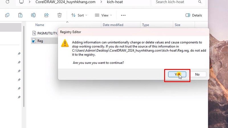 Mở file RegBước 42: Bấm Yes
