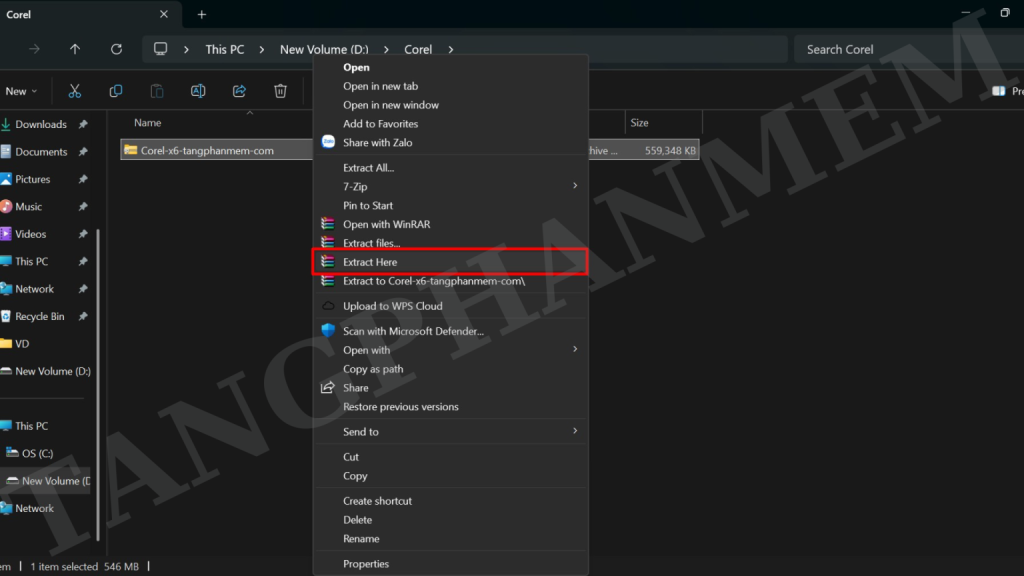 • Sử dụng WinRAR để giải nén file vừa tải bằng cách nhấp chuột phải và chọn “Extract Here”.