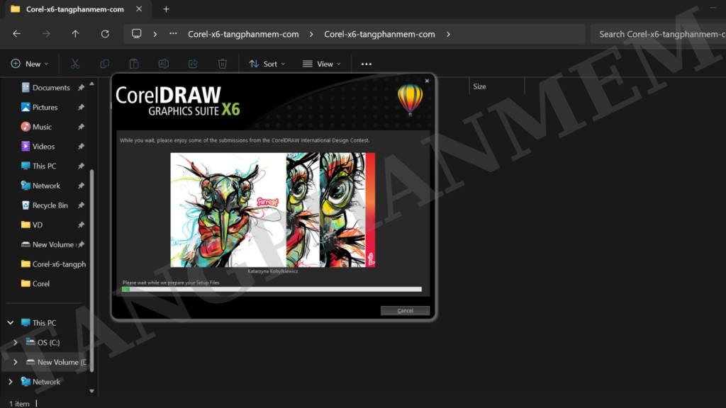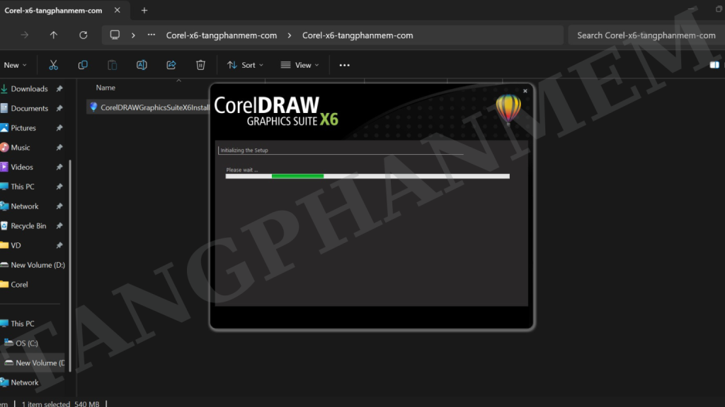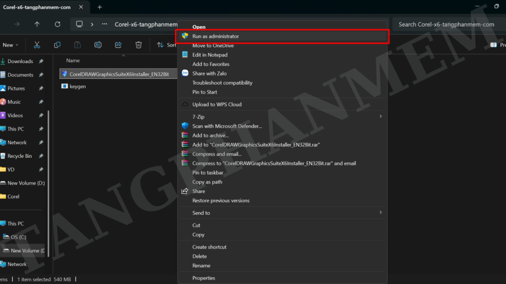 Bước 3: Chạy cài đặt: Mở thư mục vừa giải nén, nhấp chuột phải vào tệp “CorelDRAW” và chọn “Run as Administrator”. Chờ trong giây lát.