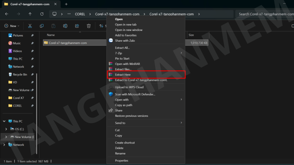 - Sử dụng WinRAR để giải nén file vừa tải bằng cách nhấp chuột phải và chọn “Extract Here”.