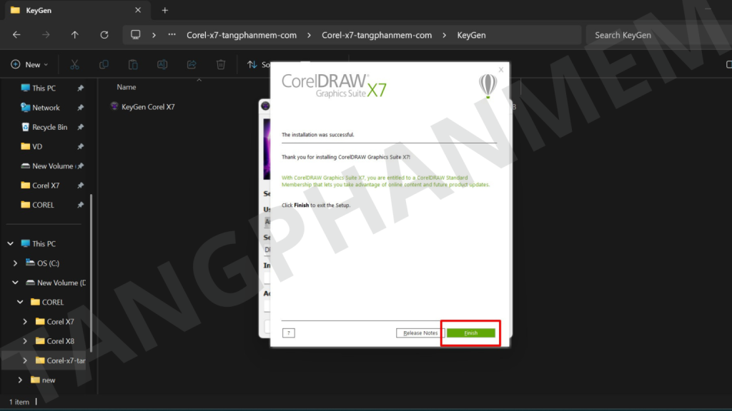 Sau khi hoàn tất, bạn đã cài đặt thành công CorelDRAW X7 và có thể bắt đầu sử dụng.